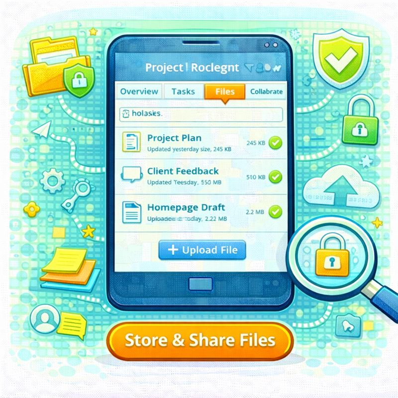 Upload, store, and share project documents securely to keep all files accessible in one place.