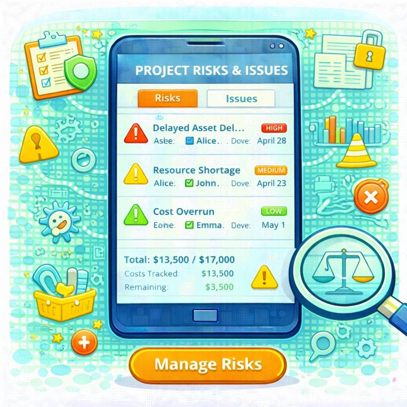 Identify, track, and manage project risks and issues early to avoid delays and disruptions.