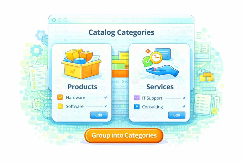 Create and organize product or service catalogs to manage items in a structured and searchable way.