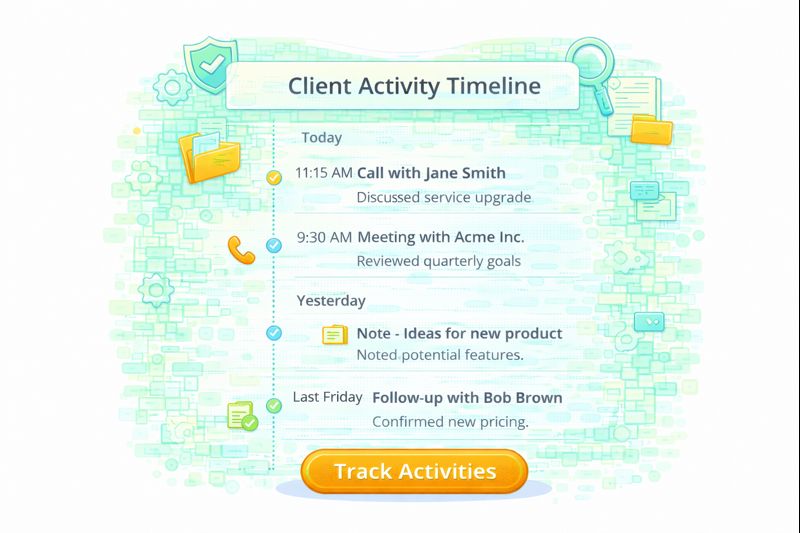 Track all client interactions in a clear timeline to understand engagement and follow-ups easily.