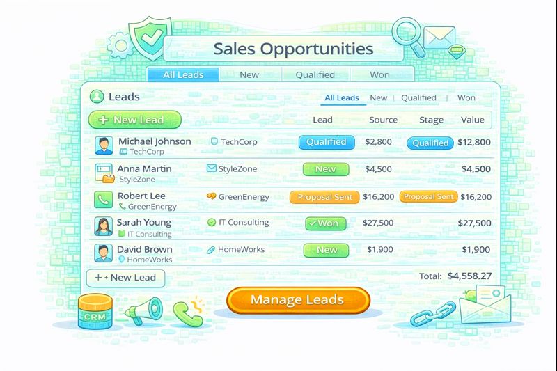 Capture and store leads from multiple sources to manage sales opportunities in one place.