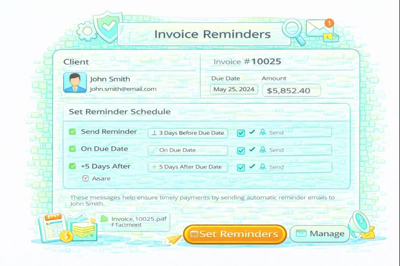 Set invoice due dates and reminders to ensure timely payments and reduce follow-up effort.