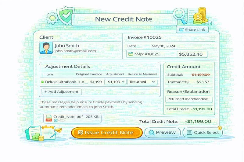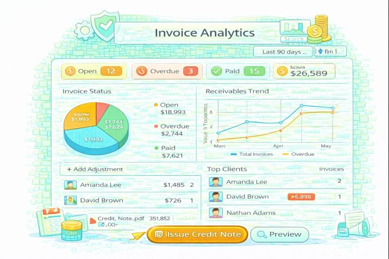 Create credit notes and adjust invoices to handle returns, discounts, or billing corrections.